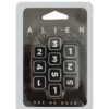 Ce set de 10 dés à 6 faces, créé pour Alien, le jeu de rôle vous accompagnera dans toutes vos parties.