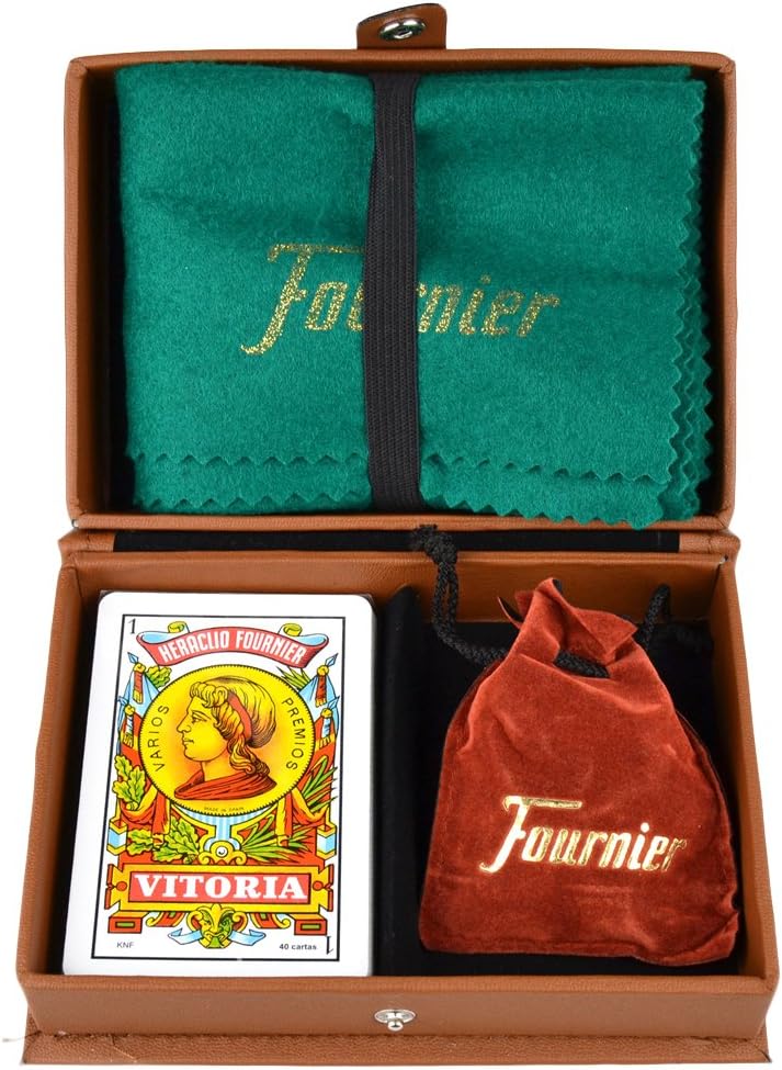 Coffret de jeu dans un coffret en similicuir, avec jeu de 40 cartes à jouer espagnoles, lot de 20 jetons et tapis 40 x 50 x 0,1 cm.