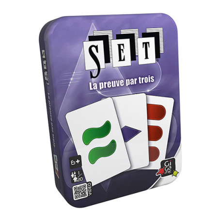 Le but du jeu consiste à observer les cartes exposées sur la table pour être le plus rapide à identifier un SET. Chaque carte présente des symboles qui combinent 4 caractéristiques : COULEUR (rouge, vert ou mauve), FORME (ovale, vague ou losange), NOMBRE (un, deux ou trois symboles), REMPLISSAGE (plein, hachuré ou vide). Un SET est un ensemble de 3 cartes dont chacune des 4 caractéristiques est soit totalement identique, soit totalement différente aux 2 autres cartes. Qui sera le plus rapide et trouvera le premier des Sets de 3 cartes parmi les 12 posées sur la table ?